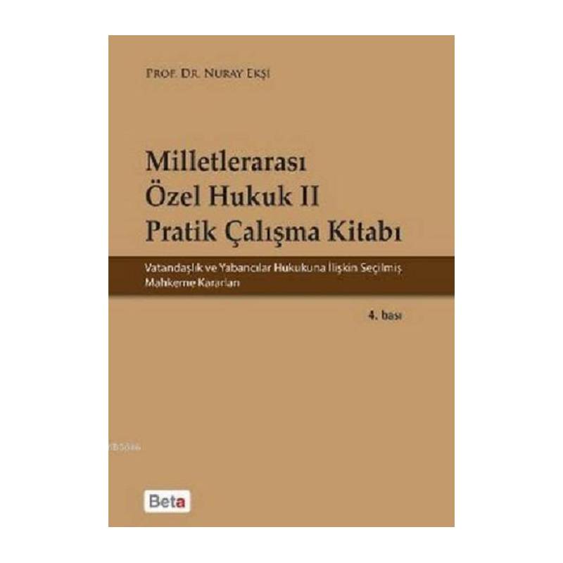 Milletlerarası Özel Hukuk II Pratik Çalışma Kitabı’nda, vatandaşlık ve yabancılar hukukuna ilişkin Anayasa Mahkemesi, Danıştay ve Yargıtay tarafından verilen kararlardan bir kısmı seçilmiş; konularına göre tasnif edilmiş; ilgili mevzuat belirtilmiş ve her bir kararın kısa birer özetini içeren başlıklarla iki bölüm altında toplanmıştır.